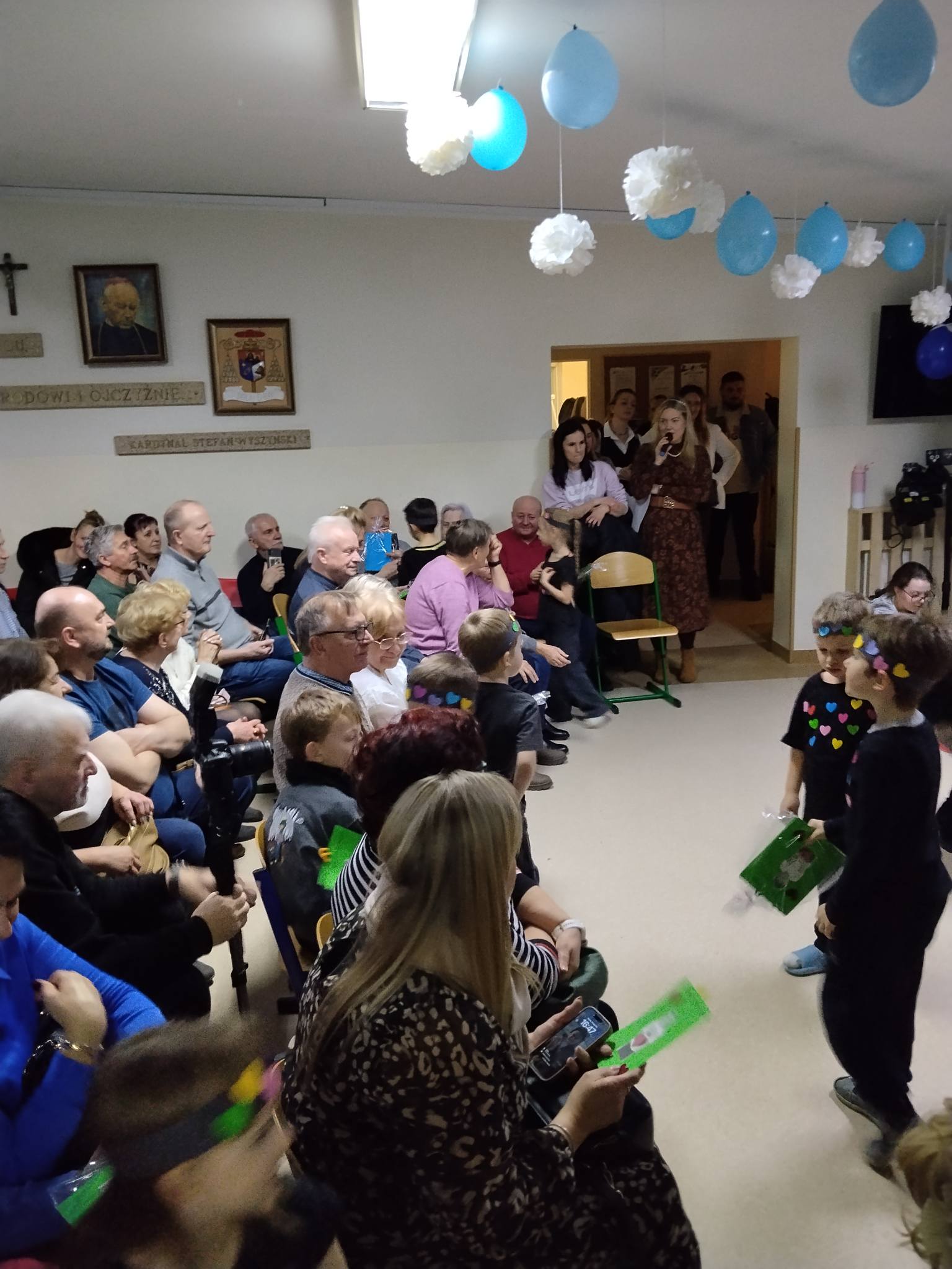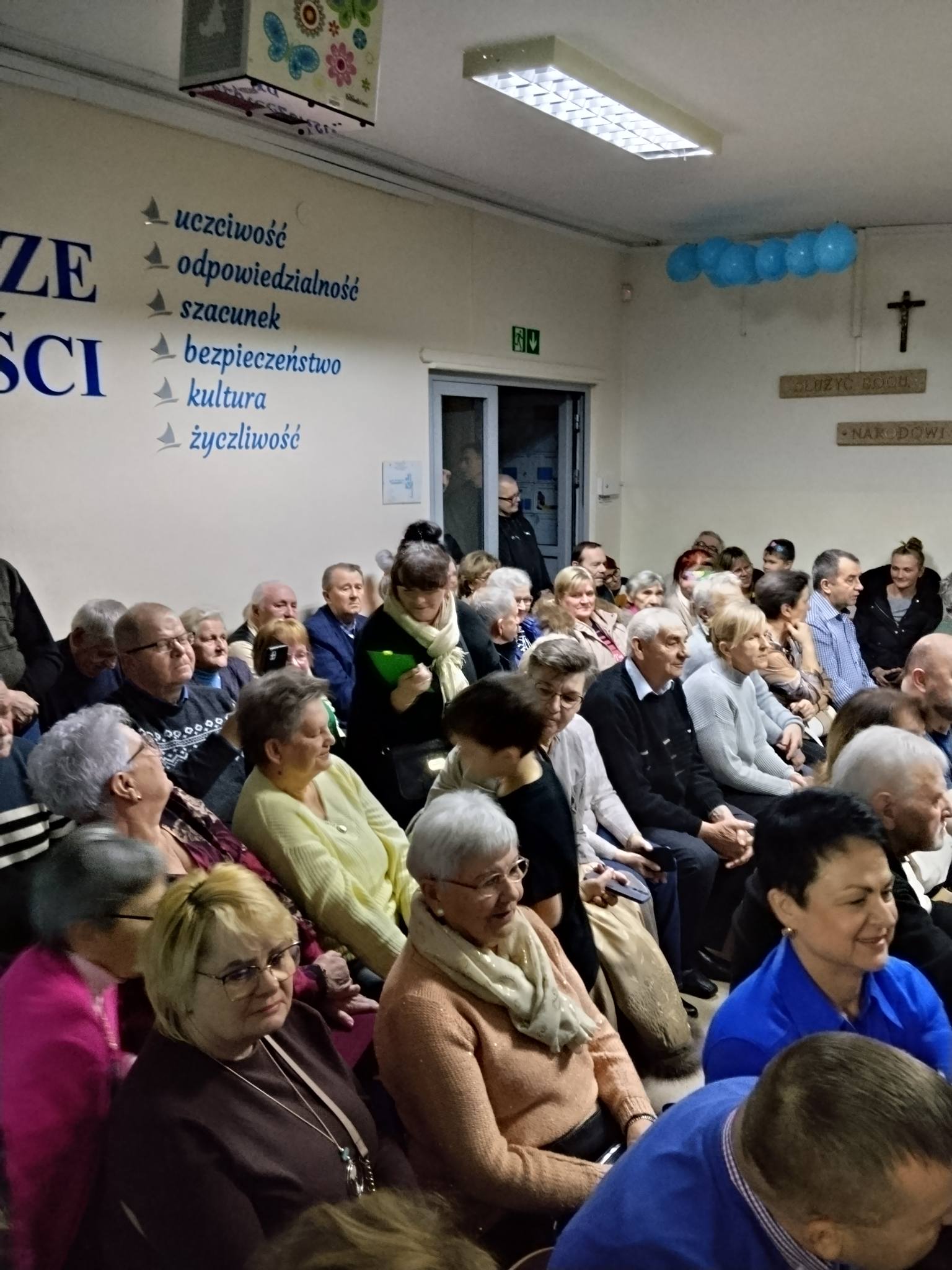 Na samym początku wszystkich gości serdecznie powitała Pani Dyrektor, kierując ciepłe słowa do zgromadzonych seniorów. Tego dnia zaprosiliśmy babcie i dziadków naszych uczniów, a także wszystkich seniorów z Lubczyny i okolic. Mimo mrozu, śliskich dróg i gołoledzi, frekwencja przerosła nasze najśmielsze oczekiwania – było naprawdę bardzo, bardzo dużo gości. Sala wypełniła się po brzegi uśmiechami, rozmowami i radością ze wspólnego spotkania.