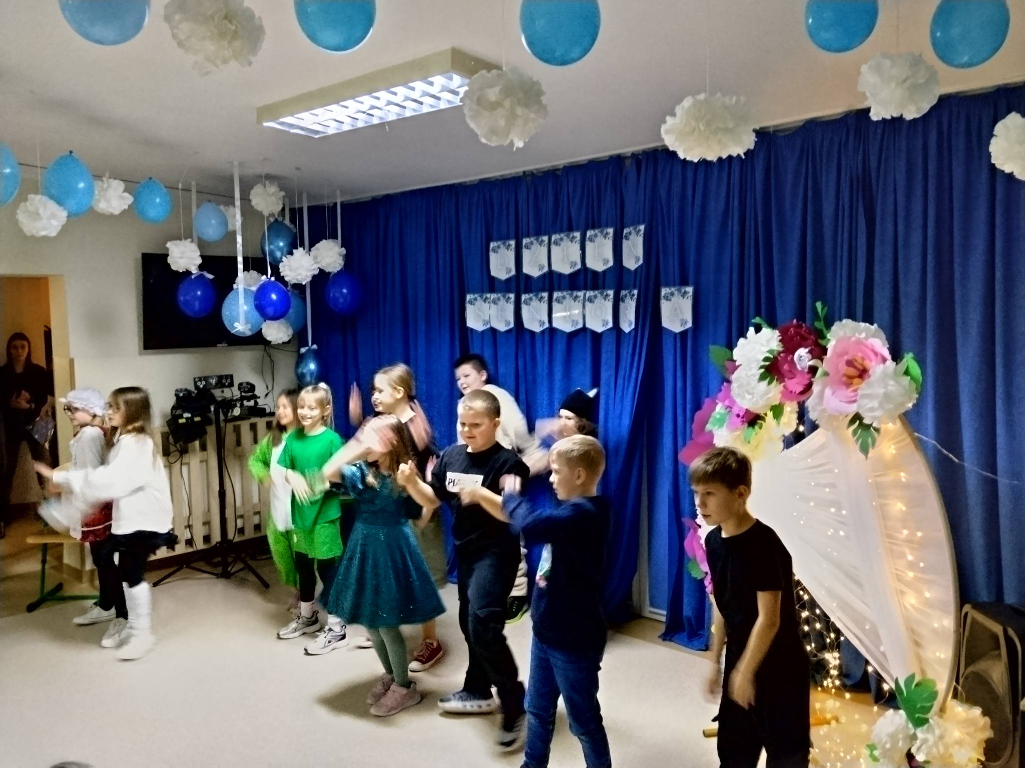 kalambury oraz wspólne tańce integracyjne z seniorami.