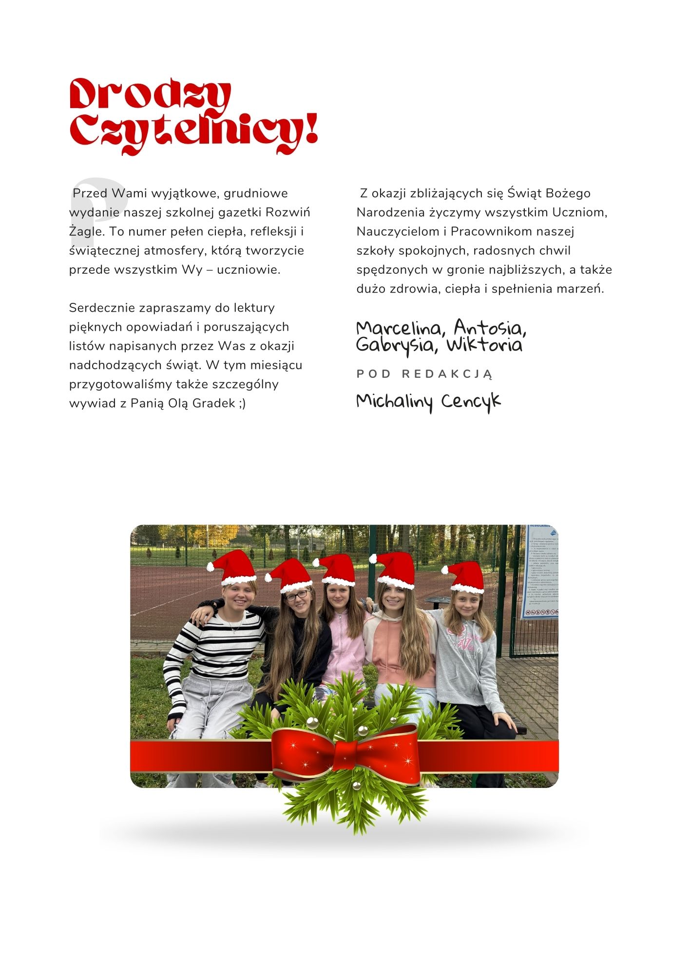 Zapraszamy do zapoznania się z kolejnym, już szóstym – świątecznym numerem szkolnej gazetki „Rozwiń Żagle”.