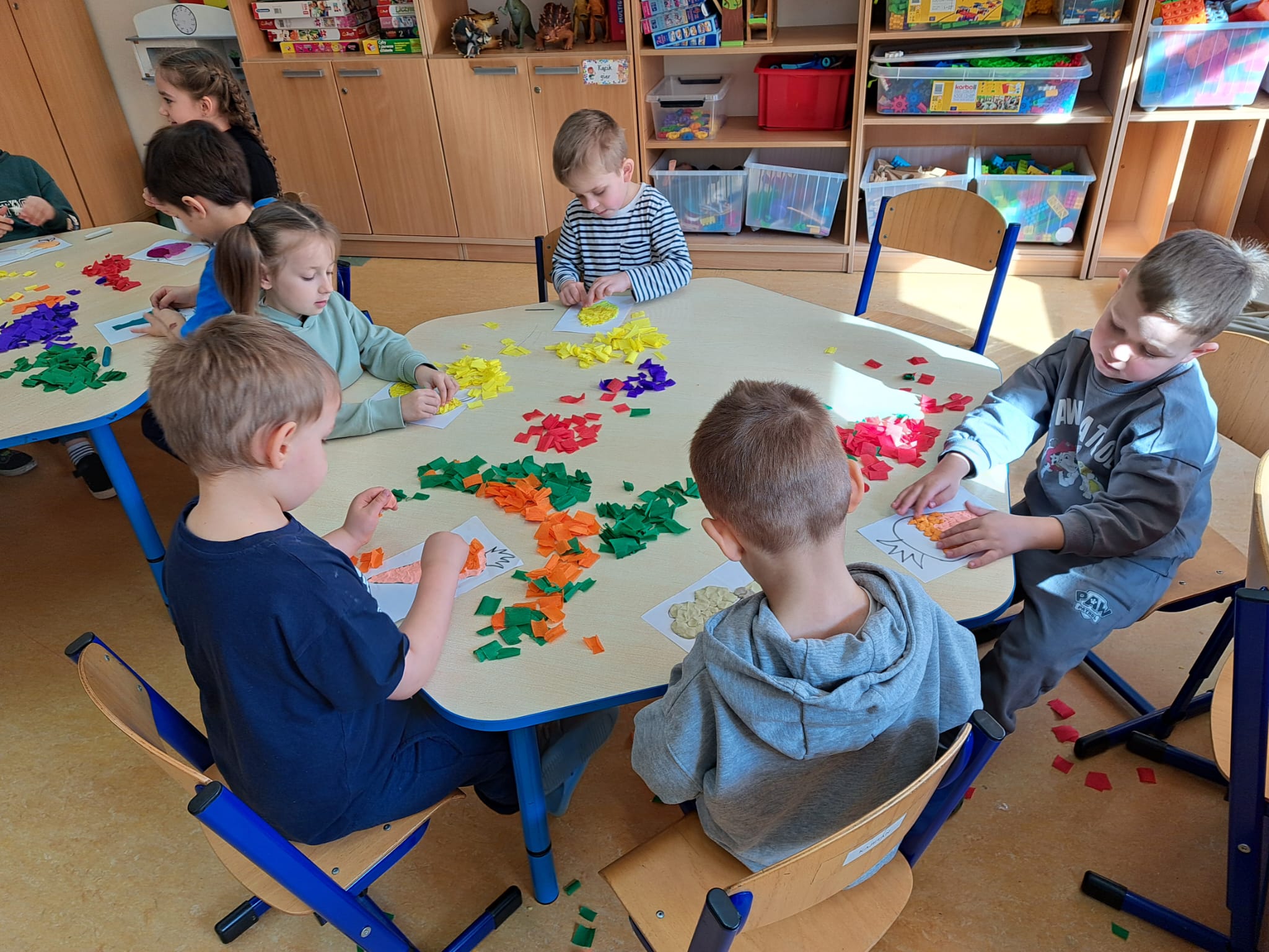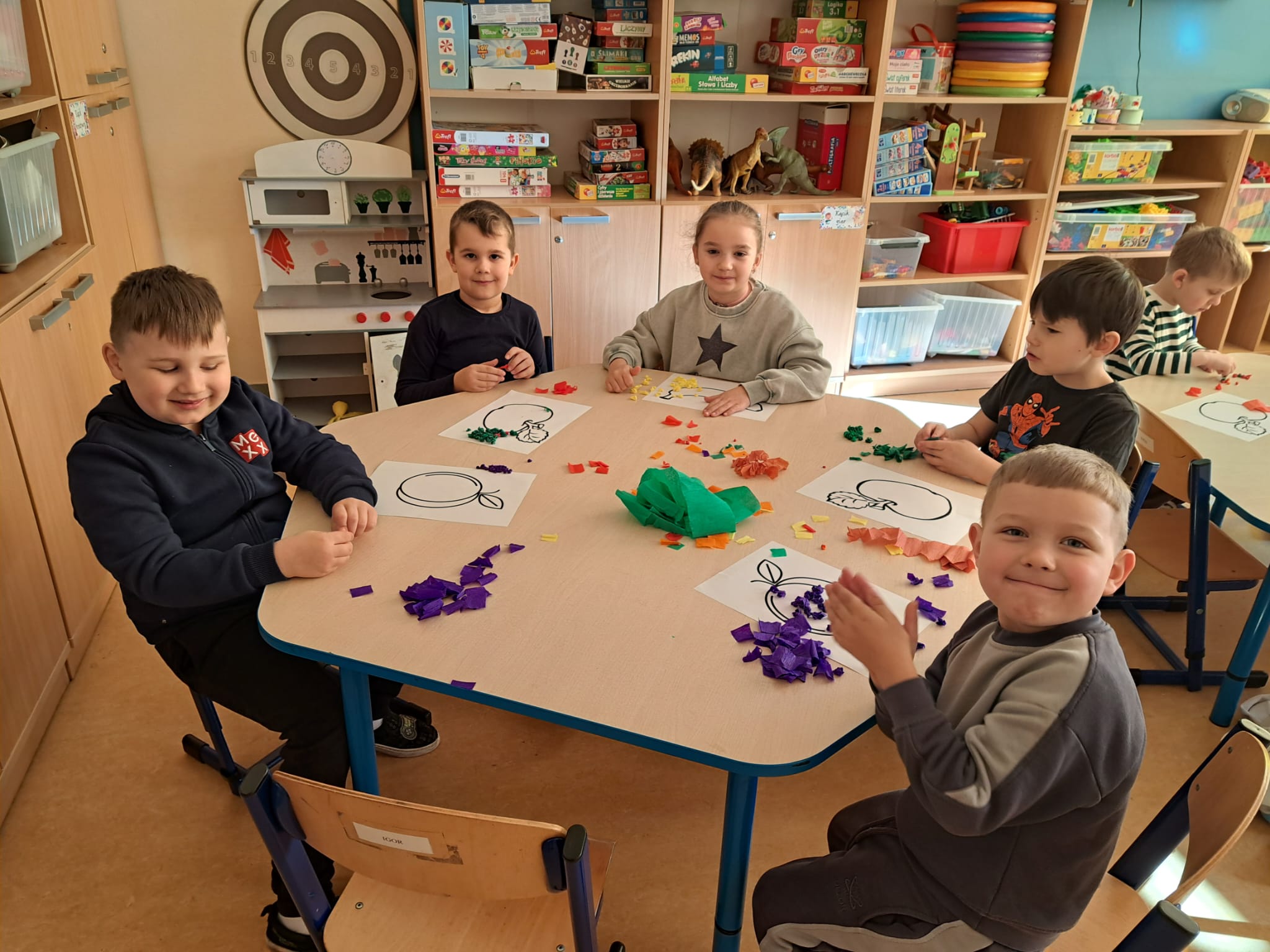 Nie zabrakło również spacerów na świeżym powietrzu, które sprzyjały ruchowi i pozwalały dzieciom cieszyć się wspólną aktywnością. Ważnym elementem zajęć były także prace plastyczne, dzięki którym dzieci mogły w twórczy sposób utrwalić zdobytą wiedzę.